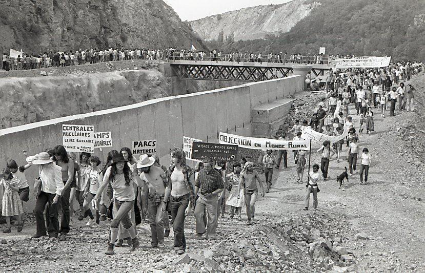 Négatif issu d'une série de photographies prises lors de la manifestation contre le barrage de Villerest (Loire) en juin 1977.